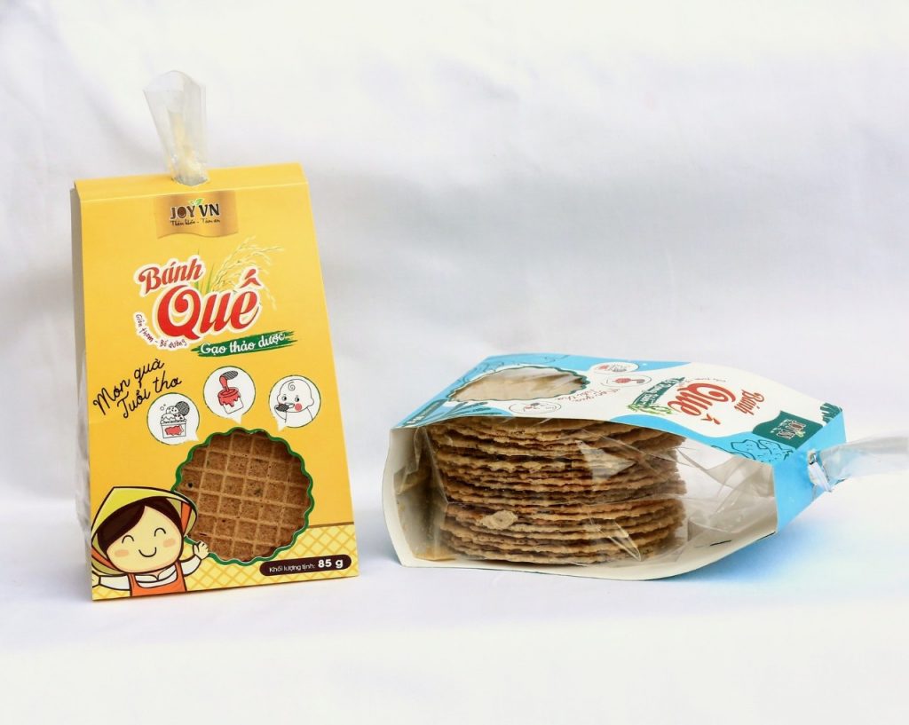 Bánh quế là sản món quà vặt quen thuộc với tuổi thơ của thế hệ 7X, 8X, 9X. Đối với JOY VN, luôn mong muốn đem tới các sản phẩm giàu dinh dưỡng, tốt lành cho sức khỏe nên chúng tôi dùng gạo thảo dược ( giống gạo lứt tím có chứa lượng lớn vitamin và chất chống oxy hóa) là một trong các thành phần chính. Đặc biệt, gạo thảo dược được chọn ở đây là sản phẩm được trồng tại HTX gạo Đại Xuân ở Quế Võ, Bắc Ninh, một đơn vị đi tiên phong trong sử dụng vi sinh nâng cao dinh dưỡng cho đất, tăng đề kháng, hạn chế sâu bệnh cho cây lúa, không sử dụng các chất BVTV có hại trong quá trình trồng trọt.