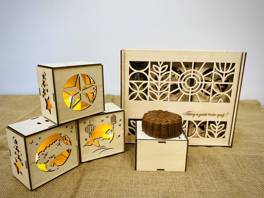 2 Bánh, 1 Mận sấy, 1 Trà hoa cúc/ Trà Gạo Lứt, 3 hộp Lung Linh nhỏ. Hộp gỗ Lam Sa (Tặng 4 Đèn nến)